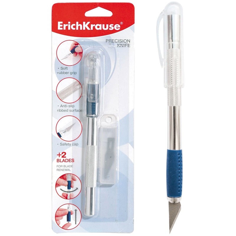 Нож-скальпель канцелярский ErichKrause Ferro, металлический, 2 лезвия в комплекте