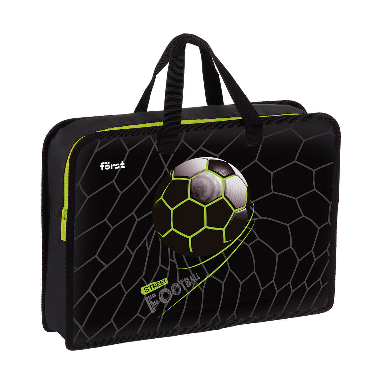 Школьная папка Först серии Street Football c ручками и одним отделением поможет поддерживать аккуратный внешний вид тетрадей, альбомов и учебных пособий. Формат изделия — А4 (340*245*75 мм). Благодаря увеличенной ширине в одно отделение поместится всё необходимое, в том числе и стакан-непроливайка. Папка изготовлена из качественного пластика, который защищает содержимое от влаги, грязи и замятия. Края укреплены тканевой окантовкой. Застёжка-молния расположена по верхнему краю изделия. Ручки сделаны из тесьмы, поэтому отличаются прочностью и не порвутся в неподходящий момент. Оформление изделия обязательно понравится ребёнку.